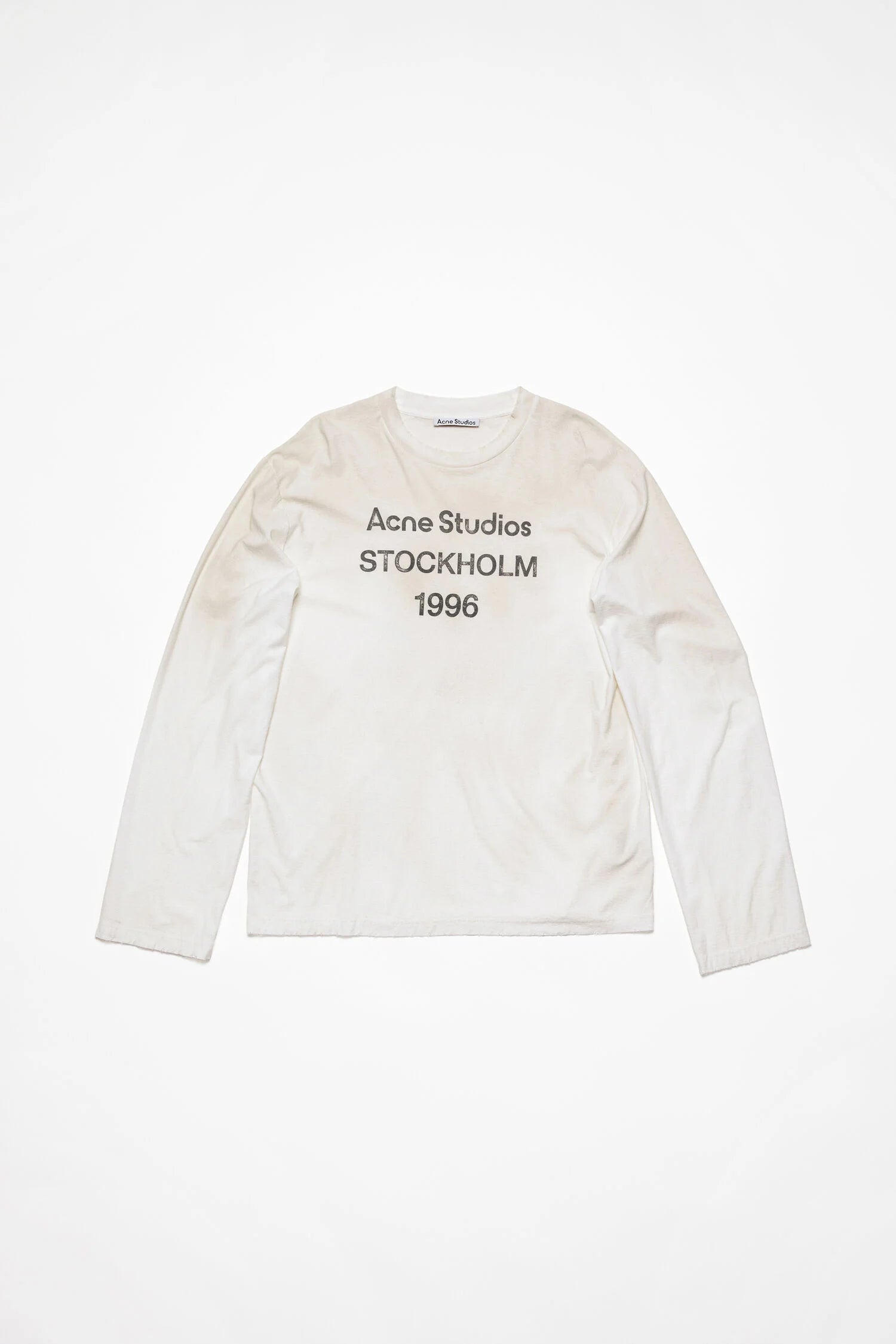 Elevate your casual wardrobe with the Acne Studios Edden 1996 Logo Long Sleeve T-Shirt. This unisex piece boasts a relaxed fit and hip-length cut, enhanced by a distressed neckline, cuffs, and hem. Crafted from premium cotton with a unique sprayed finish, it offers both comfort and edgy aesthetic.